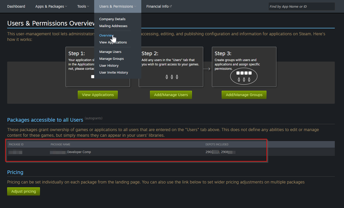 When you do not have access to the game you created, you likely haven't received a grant for it! If you have created the Steam App with the currently signed-in account, you should have received an autogrant. To check whether you have an autogrant, go to: